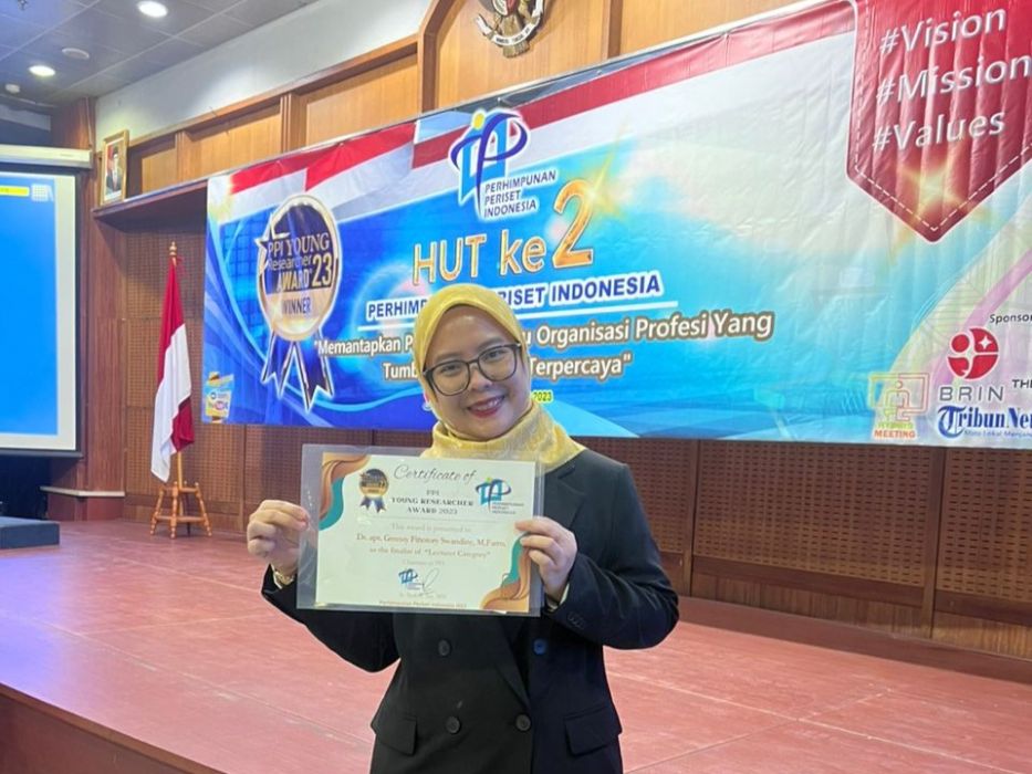 DOSEN Universitas Pancasila Dr. apt. Greesty Finotory Swandiny, S.Farm., M.Farm meraih prestasi sebagai finalis masuk dalam enam terbaik dalam PPI Young Researcher Award 2023 untuk kategori dosen. Kamis (21/12/23)