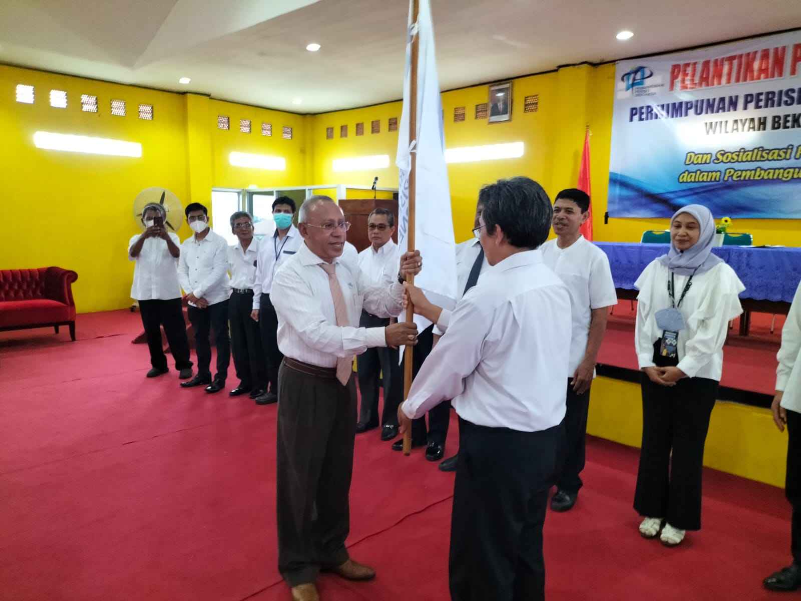 Penyerahan pataka dari Ketua PPI Pusat diwakili oleh Prof. Dr. Ir. Bambang Subiyanto, M. Agr selaku Ketua Dewan Pakar Pengurus PPI Pusat kepada Ketua PPI Prov. Kalbar, Ir. Rudy Setyo Utomo, M.Si. (IST)